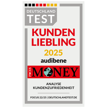 Das Institut für Management und Wirtschaftsforschung (IMWF) hat im Auftrag von DEUTSCHLAND TEST und FOCUS-MONEY „Deutschlands Beste” aus Sicht der Verbraucher ermittelt. Dazu wurden mehrere Millionen Kundenurteile zu rund 10.000 Unternehmen, Produkten und Marken ausgewertet. Das Ergebnis für die Hörgeräte-Branche: audibene wurde mit 100 Punkten auf Rang 1 als „Kundenliebling” platziert!